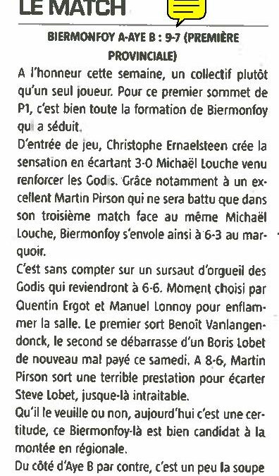 ASBL Tennis de Table Club Biermonfoy – Siège : Rue du Vivier 12b, 6950 Nassogne