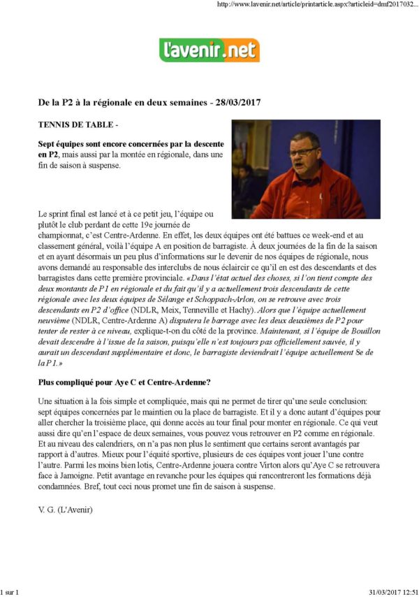 L’Avenir : 28/03/17 – La Meuse du Luxembourg : 31/03/17
