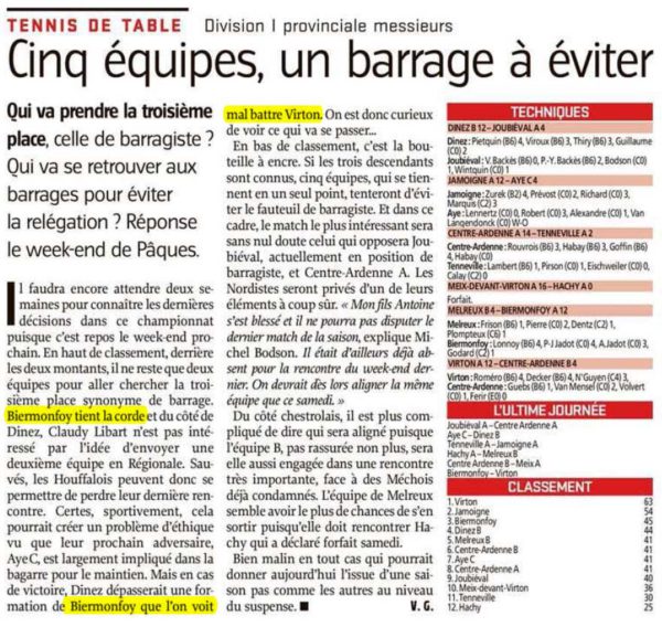Qui va prendre la troisième place. celle de barragiste ? Qui va se retrouver aux barrages pour éviter la relégation ? Réponse le week-end de Pâques !