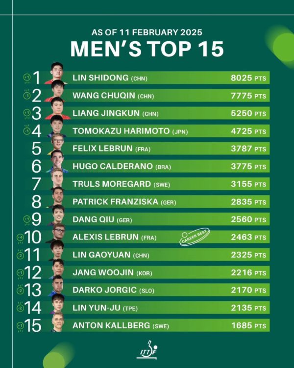 🏓 Le classement ITTF vient de couronner un nouveau roi ! Lin Shidong (CHN) accède à la première place mondiale après sa victoire au Singapore Smash 2025. Il devient ainsi le plus jeune joueur à atteindre le sommet du tennis de table mondial. Un nouveau roi à seulement 19 ans… L’année 2025 s’annonce passionnante ! Retrouvez le classement mondial ci-dessous : https://tennis2table.com/actualite/internationale/classement-mondial-tennis-de-table.html